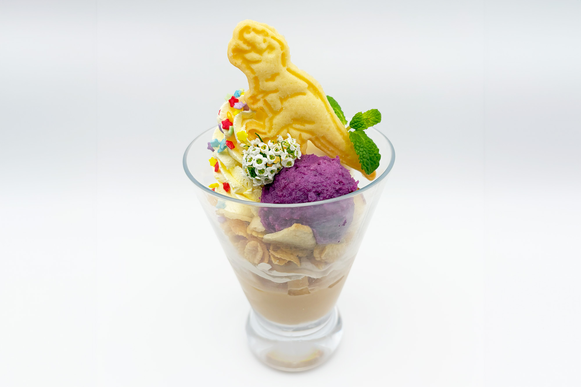 冬の大地をイメージ、地層に見立てたクリームブリュレ風ジオラマスィーツ